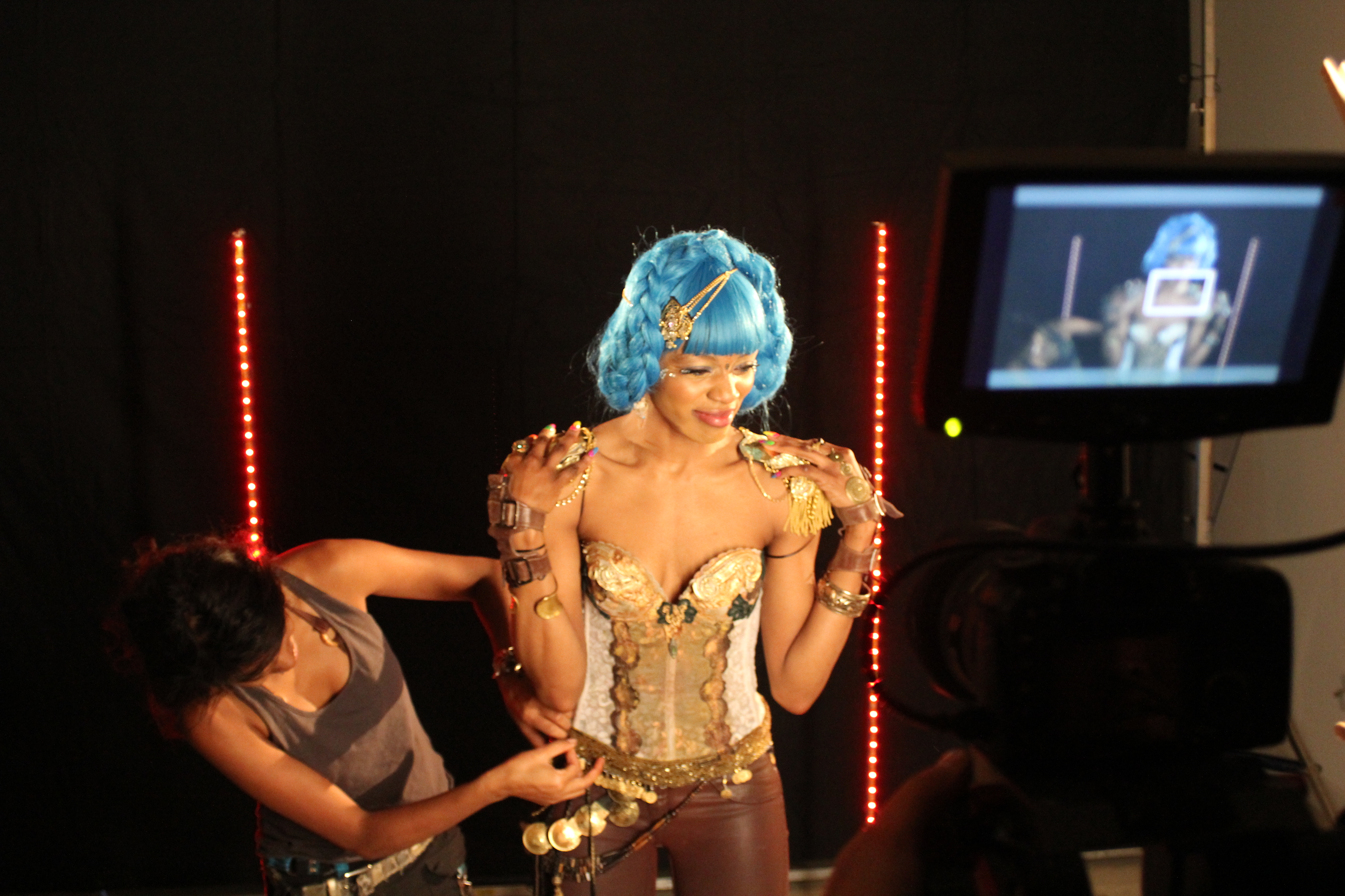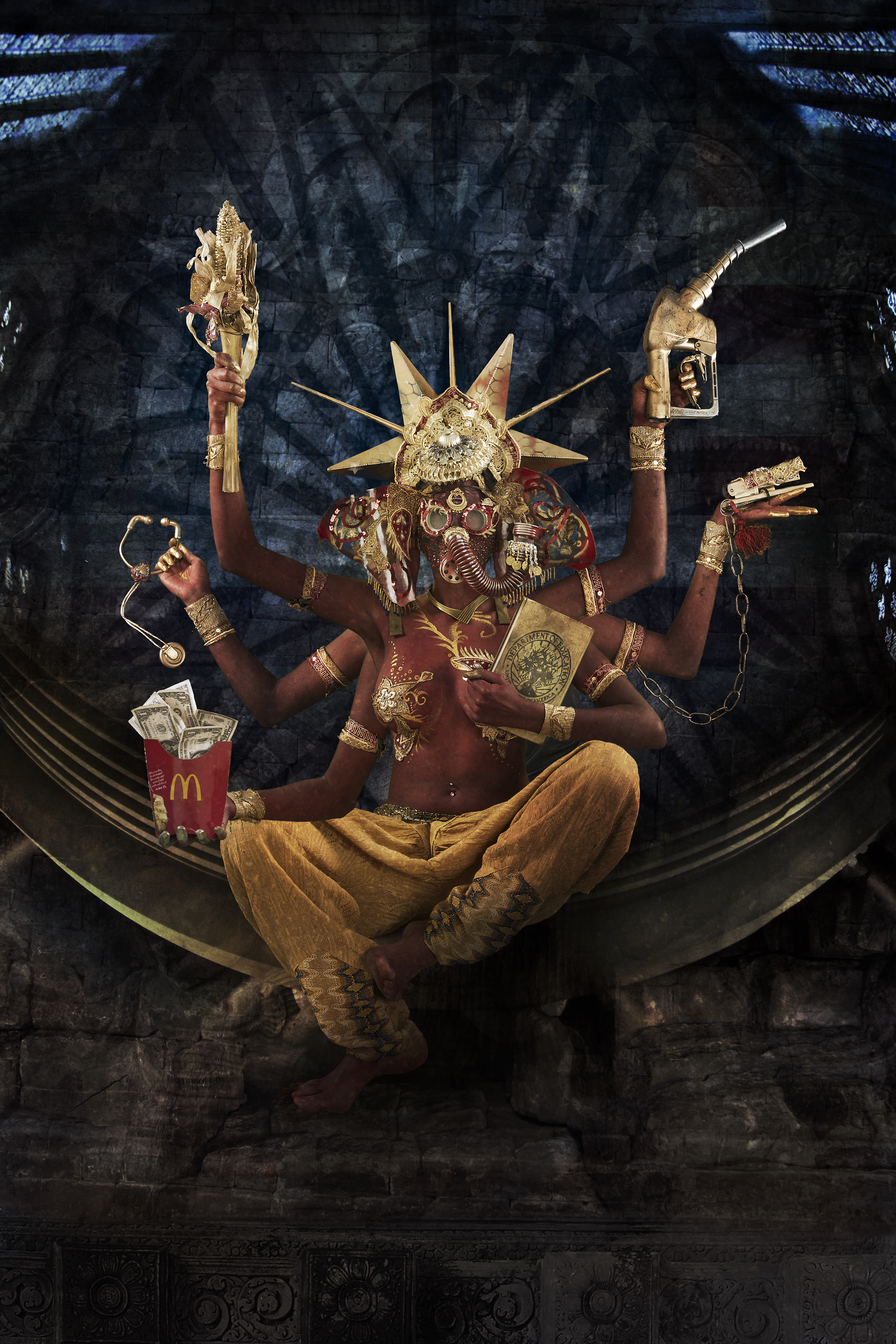Stage, video, print. Credits in watermarks and alt text.